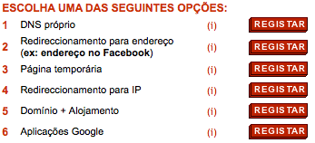Depois de seleccionado o serviço adequado para o domínio pretendido, deverá preencher os dados solicitados no formulário de registo.